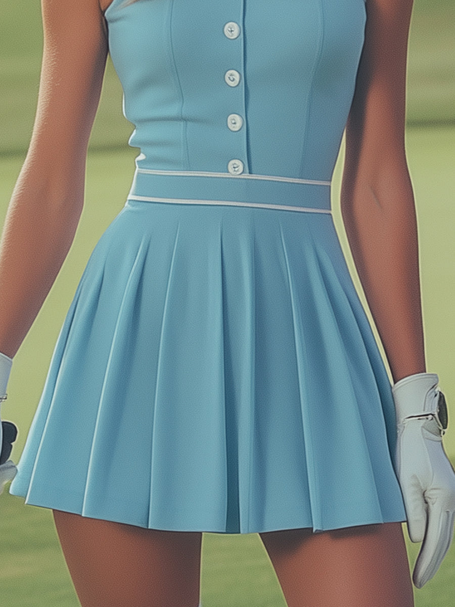 Elegant Sports White Button Detail Baby Blue Sleeveless Mini Dress