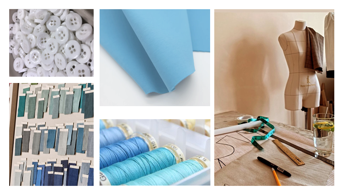 2. Design: Striking blue and white colorway, lapel, sleeveless, A-line.