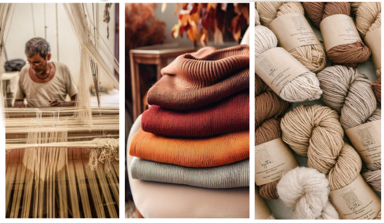 Fashion Loose Retro Trimmed Floral Gray Hooded Knitted Midi Dress