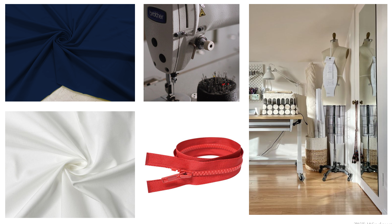 2. Design:  Lapel, sleeveless, white trim, red zipper