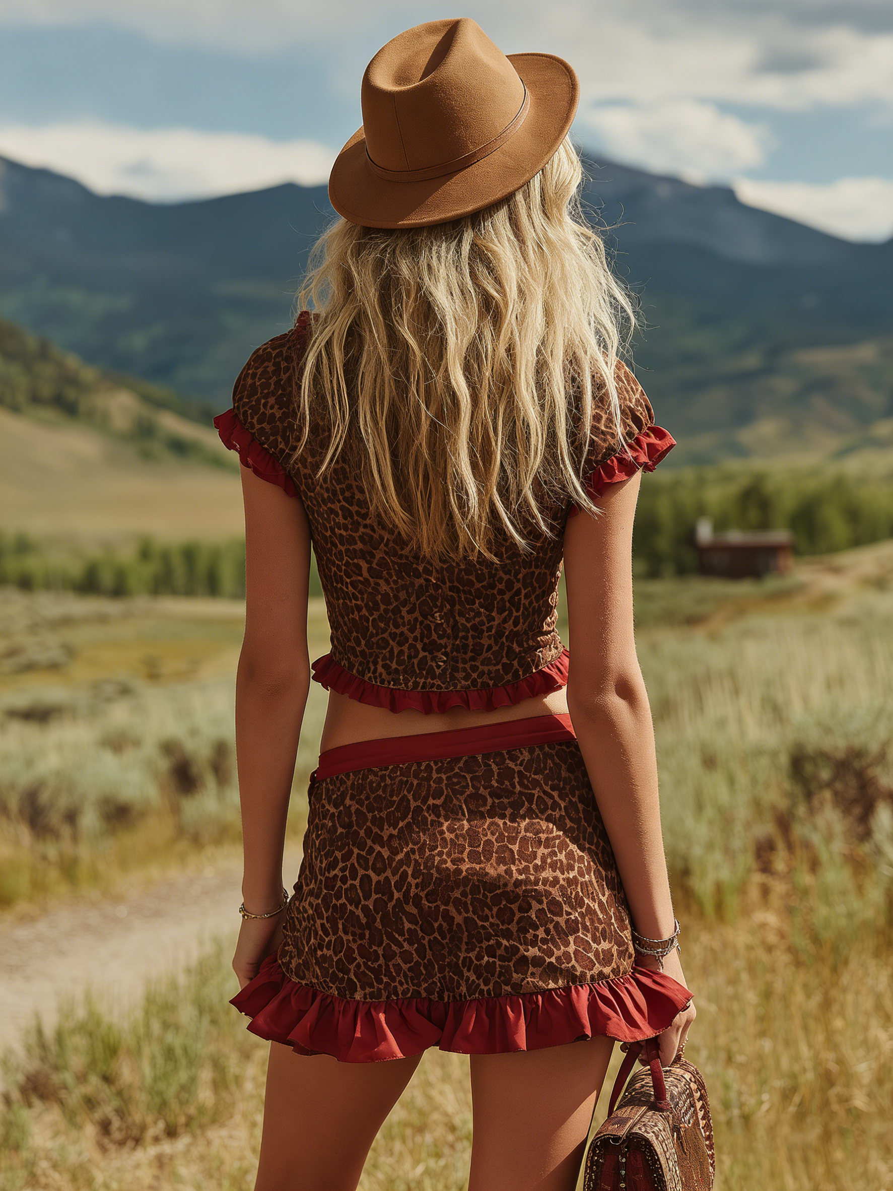 This retro-inspired set pairs a wild V‑neck, short‑sleeved button‑down top with a coordinating leopard‑print skirt for an easy, vintage‑leaning statement. The top’s relaxed button‑down silhouette and breezy V neckline balance the skirt’s flattering cut, while lightweight woven fabric gives the duo a soft drape and comfortable all‑day wear. Subtle retro details—think boxy short sleeves and a slightly cropped length—make the set feel playful yet polished.