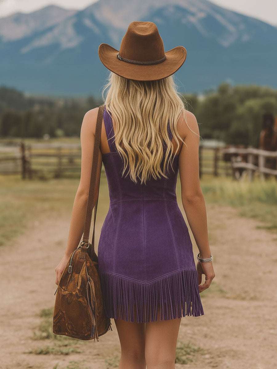 Embrace rustic elegance with our Western‑Style Zippered Pocket Tassel Faux Suede Sleeveless Mini Dress. Crafted from plush faux suede, it offers a soft, sculpted fit that moves comfortably with you. The sleeveless cut and simple neckline keep the silhouette balanced, while front zippered pockets add a functional touch of attitude. Tassel details along the hem or seams bring lively movement and unmistakable Western flair.